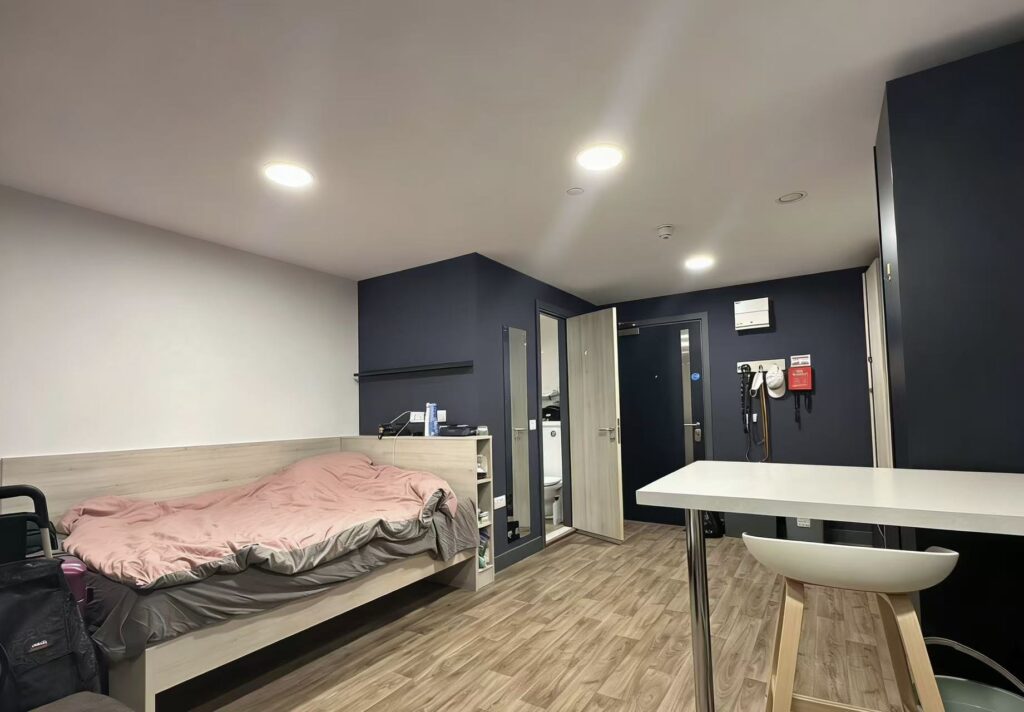 房子地理位置很好,有游戏室 就在市中心 但是不靠主路段 带屋顶露台Sky Lounge,楼下是公交站 步行约10分钟到利兹火车站,窗户是隔音的 基本上听不到外面的声音,离中超,Morrisons,Tesco近,有健身房 学习室 24/7安保系统,步行6分钟到利兹大学