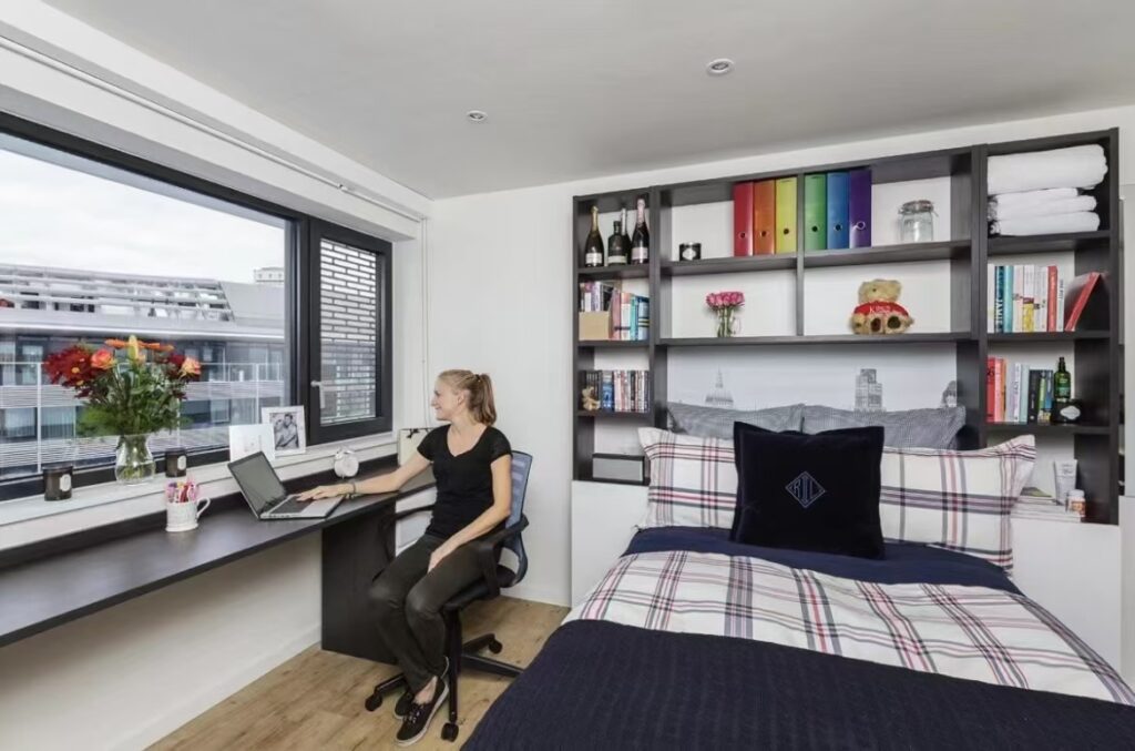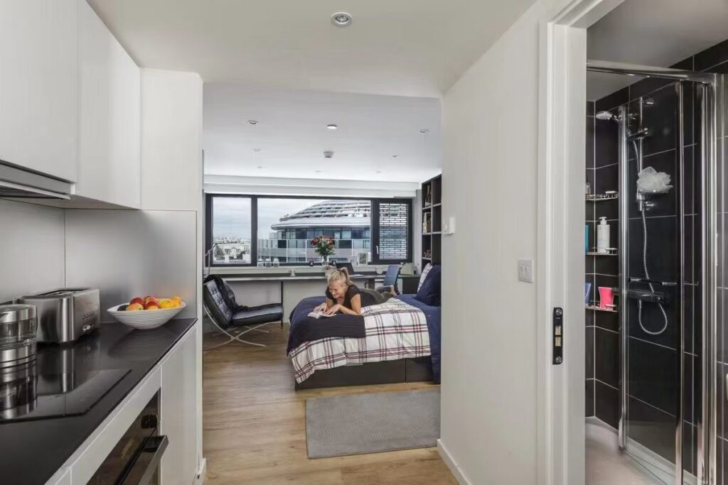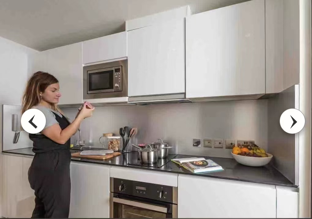 4. 有将近25个平方,是同区域其他学生宿舍的将近两倍大,自带厨房(微波炉 烤箱 冰箱一应俱全)方便做饭