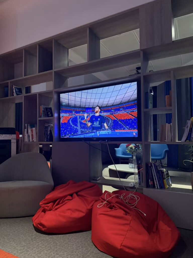 公寓配套也很全:24/7监控、安全门禁、维修响应快,楼内有游戏室,可以玩PS5 的很多游戏,还有打印机、自动售货机。前台可以帮忙代收快递,也有小推车,平时搬东西或者拿快递都很方便。另有免费住户健身房,步行 3-5分钟,空间很大。