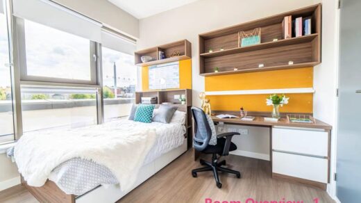 公寓为学生公寓,配有公共洗衣房,每层有公共大厨房和就餐空间。