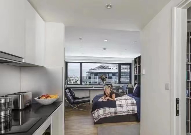 【设施】:水电网全包,房间内设施齐全,自带垃圾桶、台灯等,厨房冰箱、烤箱、微波炉等。公寓内每层皆有门禁,有自习层,洗衣房,健身房,游泳池,乒乓球台,24小时前台收快递,免费打印机,家具免费报修。